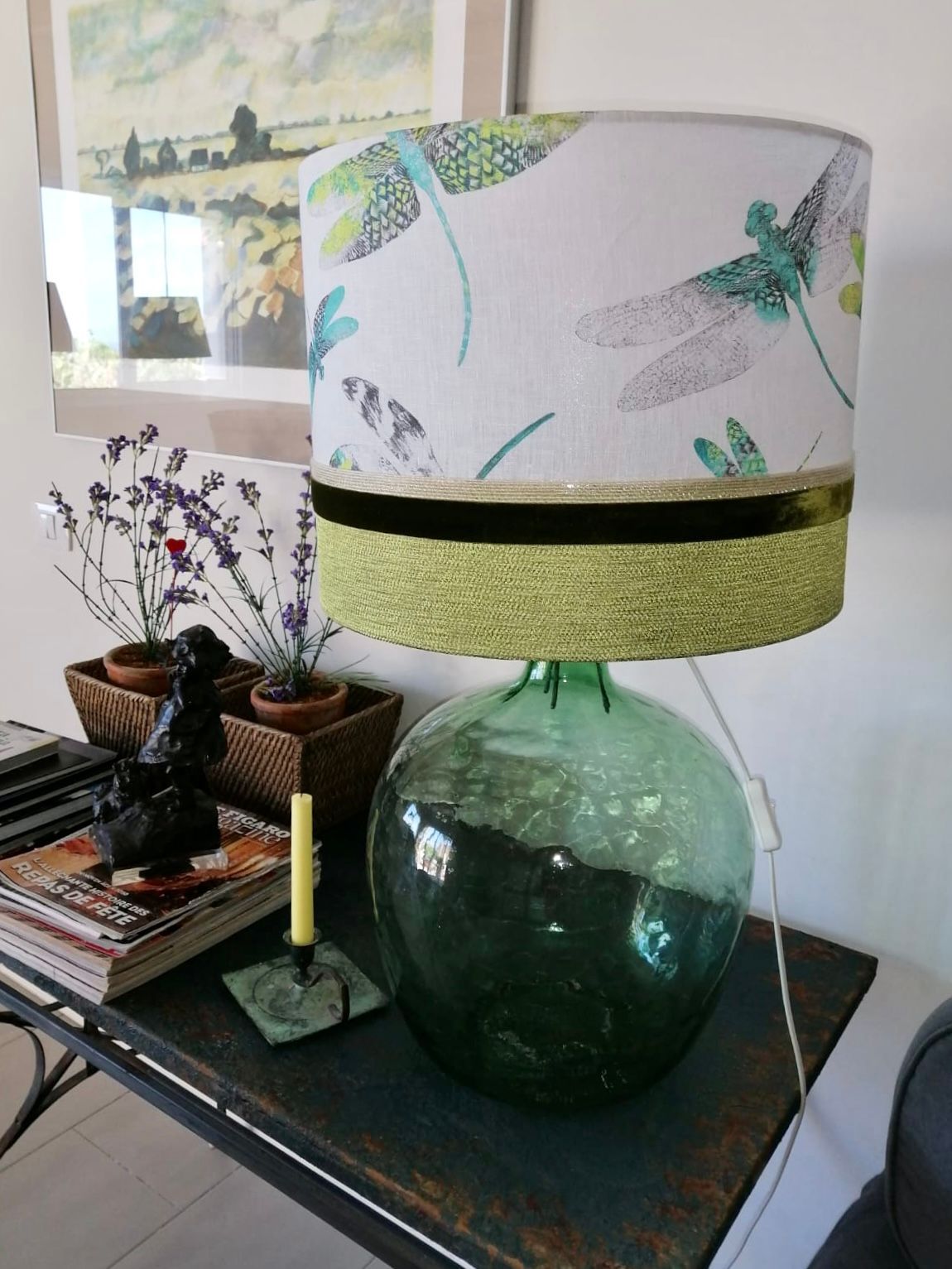 Otra labor que me encanta es la Fabricación de Pantallas para Lámparas. Para ello uso retales de las maravillosas telas que han servido para tapizar trabajos que han pasado por el taller, fibras vegetales, papeles...